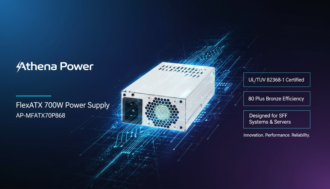Athena Power is proudly introducing the FlexATX 700W power supply unit that is certified to the latest UL/TUV 82368-1 compliance to the market.