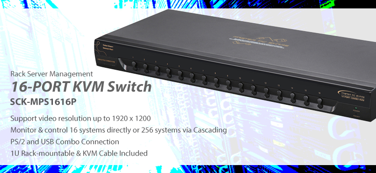 Athena Power SCK-MPS1616P is a 1U Rack-mountable 16-Port USB/PS2 Combo KVM Switch.